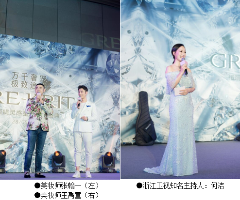 ![]() ![]() 格丽缇承包威斯汀豪华海景套房以及百人团队餐宴。盛典前夜以泳池派对接风,特邀专业化妆团队为每一位出席嘉宾打造精美妆容,堪比奥斯卡级的红毯入场秀,设置主流媒体采访区,百人团队连夜搭建的大型钻石光耀舞美会场让人惊叹。同时邀请到两位国际美妆大咖以及浙江卫视知名主持齐助阵,一场2.0级分时创新美肤风暴星光熠熠,掀翻全场热浪! ![]()