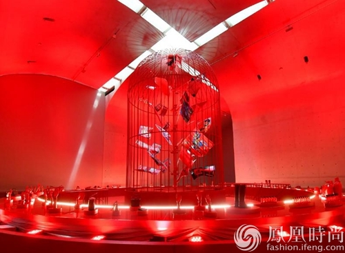 来不及消化弗拉明热的热情余韵,便被“红舞池”的炫目场景摄去心魄。空间中央旋转不迭的巨型鸟笼在一片红光的笼罩中散发出诱人的氤氲, 70 厘米格子花呢千鸟格纹提花真丝方巾运用经典红黑配色,略带朋克感的设计唤起隐匿于端庄表面后的叛逆精神,随风摇曳于鸟笼之中,自由律动如林中飞鸟。同为红色系的爱马仕SLIM D’HERMÈS 39.5毫米超薄腕表、亮面羔羊皮长手套与绒面山羊皮低帮便鞋,金属装饰的Swift 小牛皮手环更是助力整体造型酷感升级。Cape Cod Shadow 腕表由不锈钢表盘搭配Barénia小牛皮双圈表带,是每个玩性大发时刻的不二选择。兔毛毛毡帽子配绒面羔羊皮饰带与绒面山羊皮凉鞋材质呼应,传递当代女性对于生活品质的执着考究。